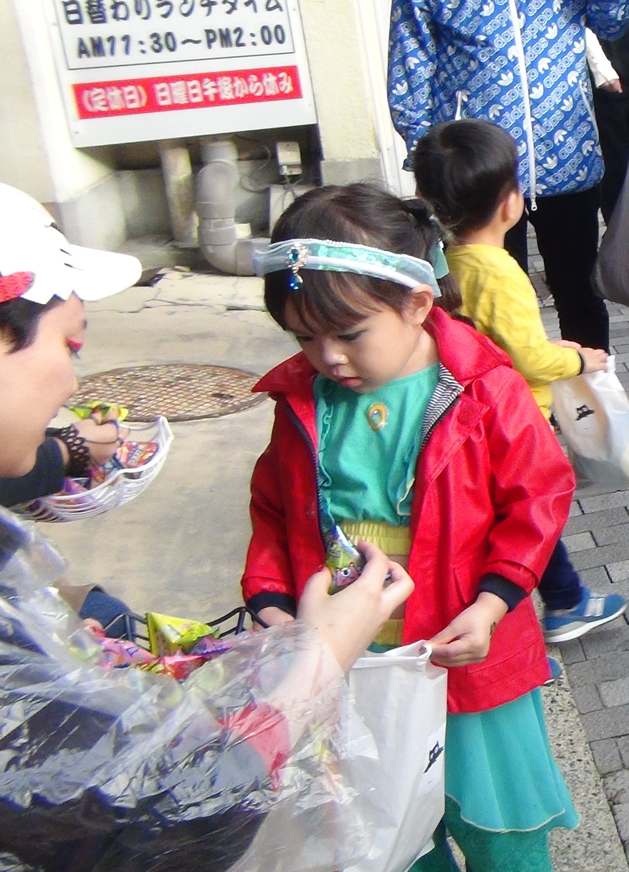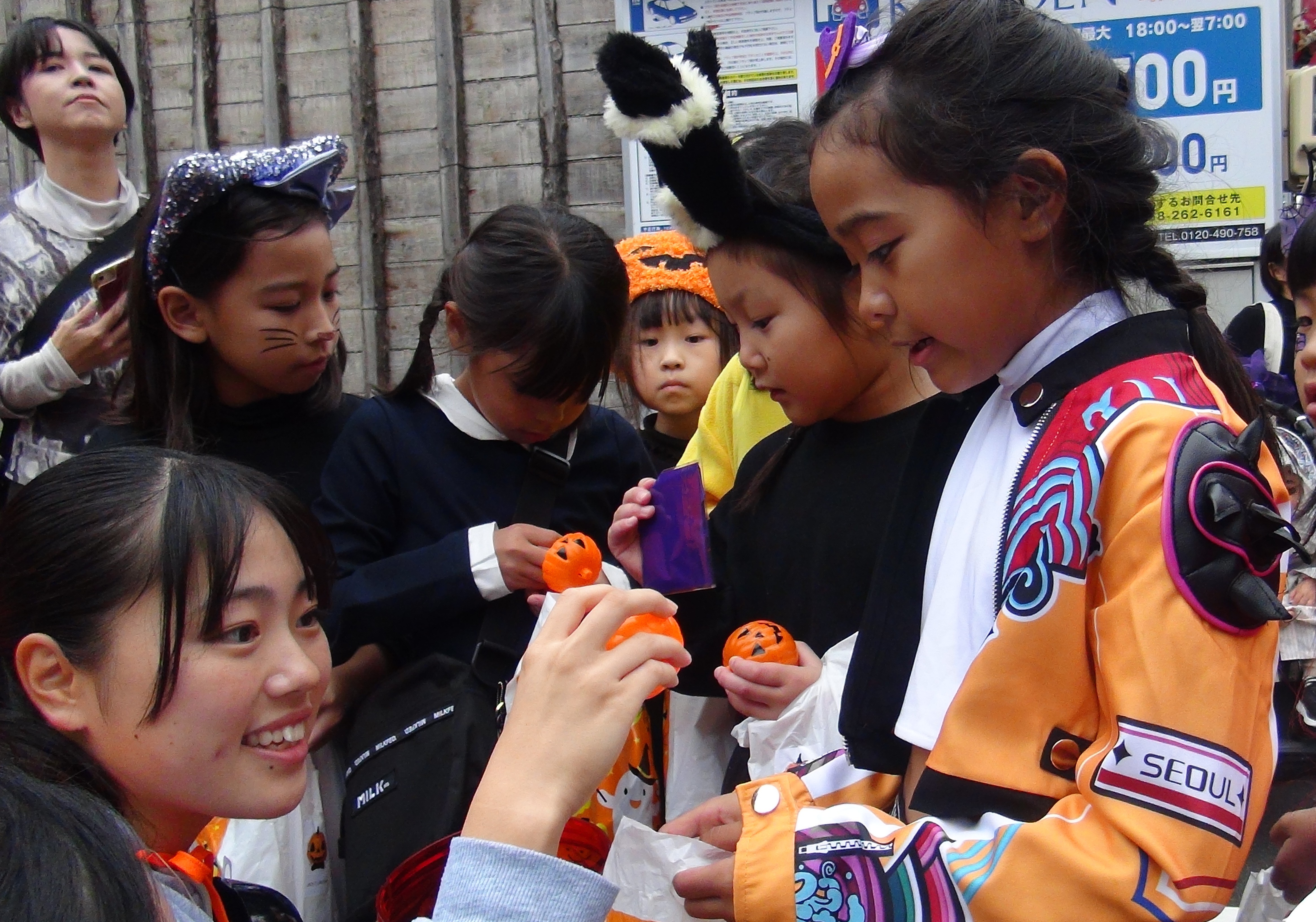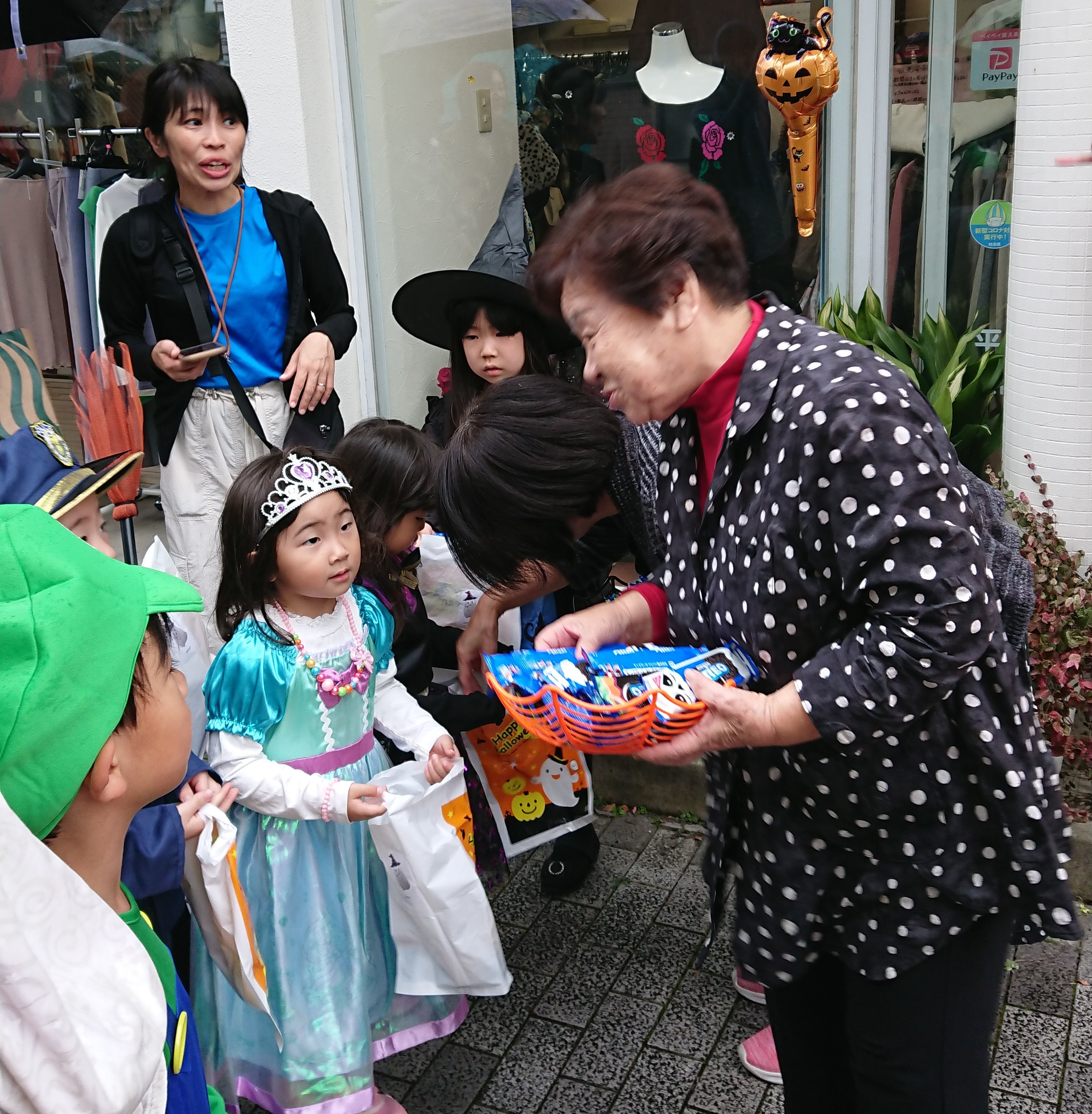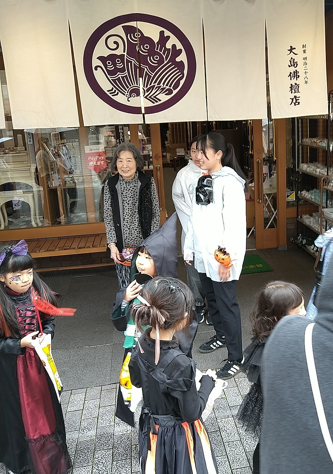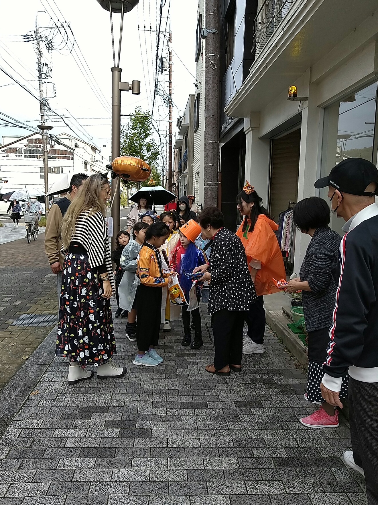 美殿町と殿町では、商店街の協力により各商店にお菓子を用意してもらい「トリックオアトリート」と言って訪れる子供に配布していました。
